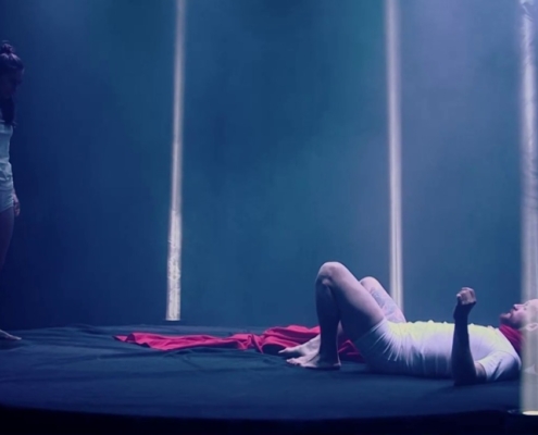 DUELO es un cortometraje performativo que pone en escena las pasiones más humanas cuando deambulan sobre el delgado hilo que separa la razón de la pasión; enfrentadas a través de la danza, la poesía y la música.